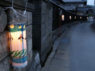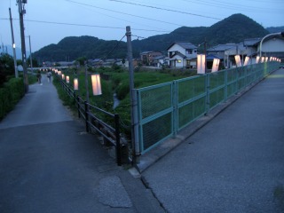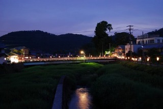 【左】夕闇迫るの天野川 【右】掛行灯に導かれて