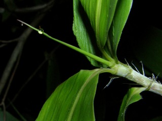【左】笹からから夜露が噴出していました。