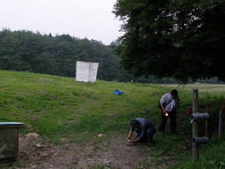 28日は5:00起床、朝食後湿地散策コースを観察し、9:00過ぎに観察会を完了しました。今回灯火に来た糞コガネはわずか2種類、期待はずれの結果に終わりました。時期や設置場所が悪かったのか、それとも牧場でも減ってしまったのでしょうか。今後、知多半島の牧場や段戸牧場など時期、場所をいろいろ変えて観察を続けていこうと思います。(記・平松俊)