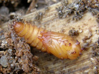 【右】オオモモブトシデムシ、バッタ類の幼虫