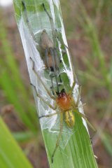 【左】左、カバキコマチグモの巣)。右 上が♀、下が♂