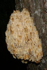 【右】マツの枯れ木に生えるフサホウキタケ