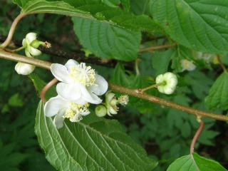【左】サルナシの花、雌雄雑居性でしょうか。
