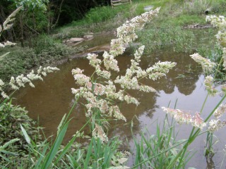 【中】ハルガヤ(外来)上のシラゲガヤと共に牧場でよく見かけます。