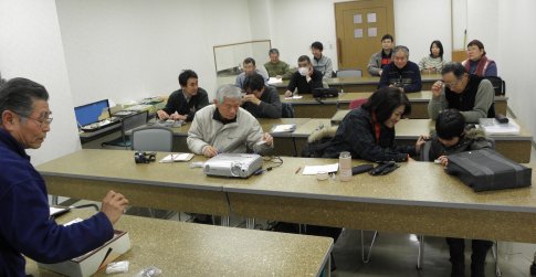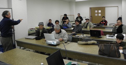 午後はパソコンの実技研修を行い、内容は写真加工と画像処理に付い研修をしました。これは当会で公開しているホームページに観察記録にあわせて観察会の様子や見られた生き物の写真を会員の皆さんに提供していただくためのものです。