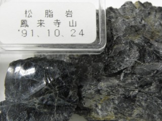 【左】同じく鳳来寺山産の松脂岩(黒曜石は含水率が低いもの)