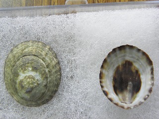 【左】ベッコウカサガイ? 【中】トラフザラガイ? 【右】ユキノカサガイ