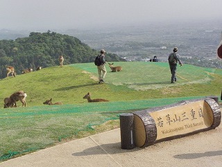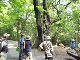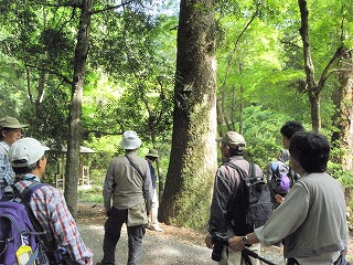 高速道路渋滞で、春日大社駐車場で9:30待ち合わせ予定が11:30の2時間遅れの到着。そこから、久保田さんと田代さんの案内で、まず、奈良公園や春日大社周辺の森を観察しました。