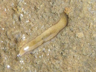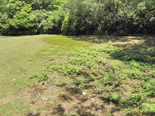 シカが食べる木は、シカが食べることができる約2mの高さまでの葉がきれいに食べられており、樹木の下の部分が見通しがよくなっていました。これをディアラインというそうです。また、森の中にぽっかり開けた草原は、昔、食糧難のときに森を切り開いてつくったサツマイモ畑跡で、そこの草をシカが食べることで遷移が進まず、シカが草原を維持しているということも面白いと思いました。そこではイノシシのぬた場や脇の沢でのプラナリア、水生昆虫の観察もしました。