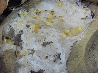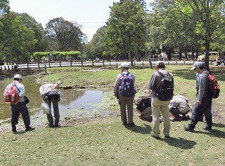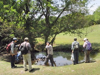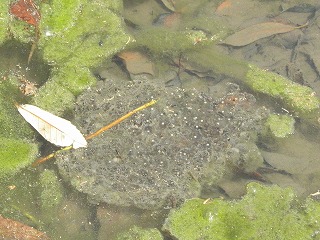 昼食を摂った公園にある「雪消の沢」では、シュレーゲルアオガエルの声を聞き、卵を水面に見つけることができました。