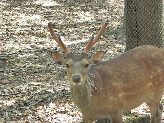 奈良のシカについては興味深いお話を数多く久保田さんに伺いました。今、現在奈良のシカは、約1100頭、近年、減少傾向ににあるようです。彼らは慢性的な飢餓状態にあり、そのために奈良公園のシカの体格は、野生のシカよりもかなり小さいということです。シカのえさとなる樹木の影響もあるようで、シカが食べる樹木は、シカが食べ減少、代わりにシカが食べないナギは増加。同じくシカが食べないアセビも数多く目にしました。