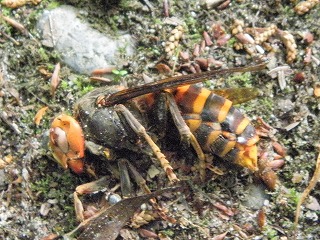 【左】オオスズメバチ 【中】腐生植物のギンリョウソウ 【右】オナガミズアオ?