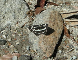 【左】マガリケムシヒキ類(灯火に二匹やってきました) 【中】サカハチチョウ(逆八と呼べるのは夏型です) 【右】コミスジ