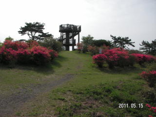 【左】シモフリコメツキ類 【中】ヤマツツジが咲く、神野山の展望台に登っています。 【右】