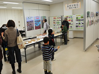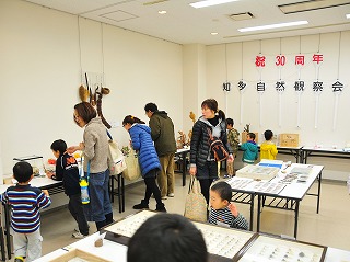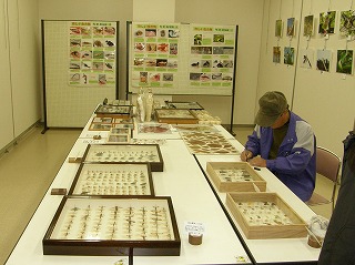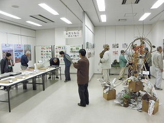 当会は自然観察会を中心に多種多様な行事を実施しています。年間の行事回数は、各所からの依頼を含めて年間150以上となってています。そんな行事で参加者の皆さんに自然を理解していただくために用意しているものに標本、写真、自然工作物などがあります。今回、会員が自然観察会で利用している資料を展示しました。(記・ )