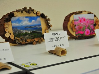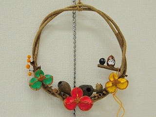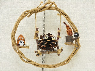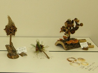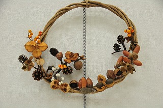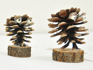 【左】写真立て 【中】マツボックリの人形 【右】リース