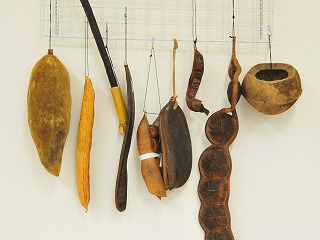 【左】知多の珍しいチョウ 【中】大きな木の実 【右】珍しい漂着物