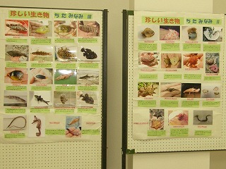 【左】展示室入り口 【右】昆虫、海の生き物等の標本等