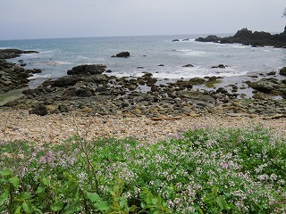【左】浄蓮・ニオイタチツボスミレ? 【中】浄蓮・アシナガタケ? 【右】菖蒲沢海岸・以後岩石まで菖蒲沢海岸の写真