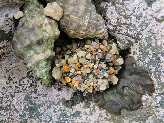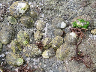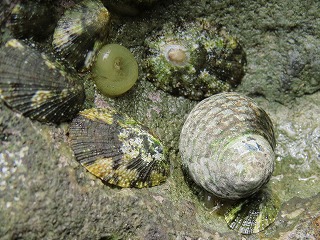 【左】ウノアシ 【中】カラマツガイ、イシダタミ 【右】クロフジツボ、イワフジツボ