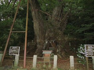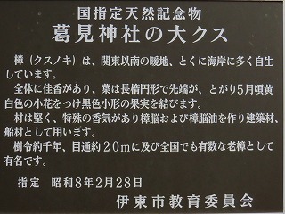 【左】ヒメイタビ 【中】葛見神社大クス 【右】解説板