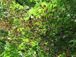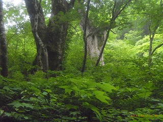 【左】元気に登山           【中】ブナ林            【右】トチノキの大木