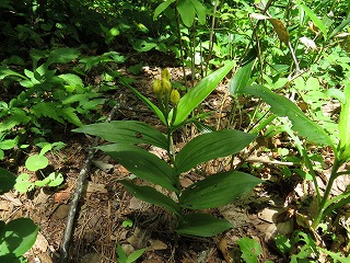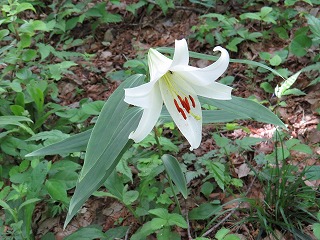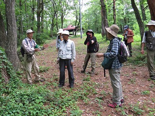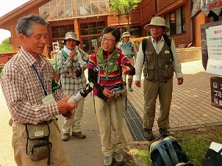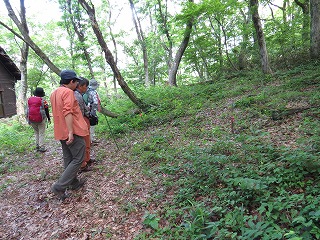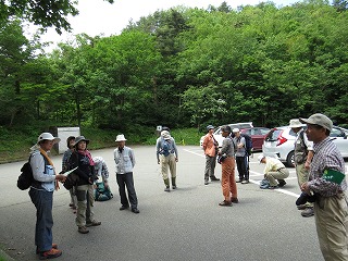 2日目は、福井県自然観察指導員、北川氏のガイドで福井県自然保護センターの観察会に参加しました。テーマは、「シソバナタツナミソウの観察」でしたが、それ以外にもササユリ、キンラン、たいそう立派なナルコユリ等の花を見ることができました。また、ムササビの葉の食み後、シカ、イノシシ、クマの樹皮の剥ぎ方の違い、観察中のエピソードなど興味深いお話も伺うことができました。