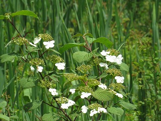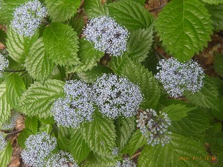 【左】コアジサイ           【中】イカリソウ(赤花?)           【右】ミヤマガマズミ