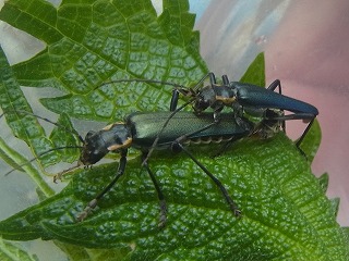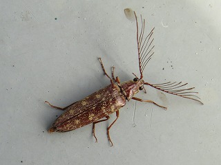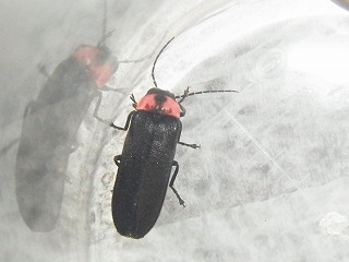 【左】ヒゲコメツキ(宿の近くで)         【中】オビカレハ         【右】アオジョウカイ