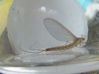 今回の宿は、南越前町にあるバンガロー。ナイトハイクでは、ゲンジボタル1頭、蛍光灯に集まる卵を持ったカゲロウ、クロスジヘビトンボ、カワゲラ等の虫たちを見ることができました。