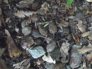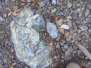 【左】コガネマイマイ?         【中】ナガレヒキガエル         【右】チャート。夜叉が池付近の岩石