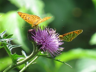 【左】オトシブミ           【中】アカバキリガの幼虫?        【右】マアザミに来たウラギンヒョウモン