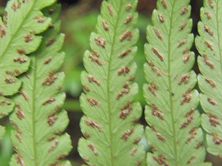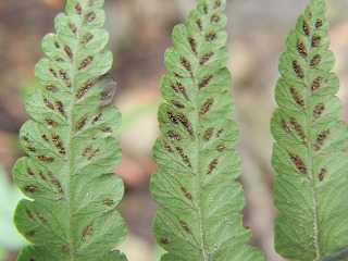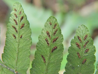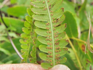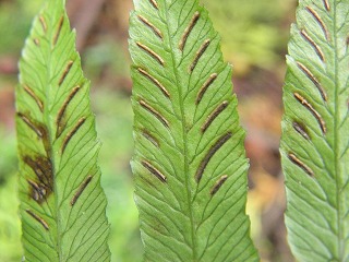 【左】ホソバカナワラビ 【中】リョウメンシダ 【右】リョウメンシダ