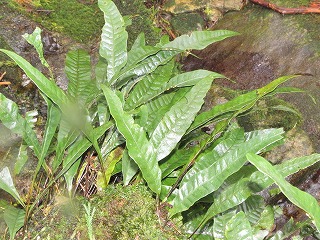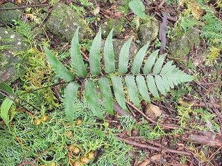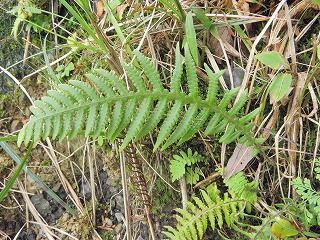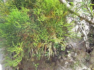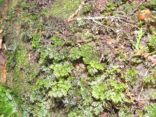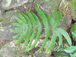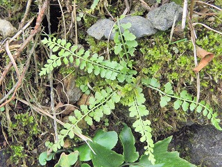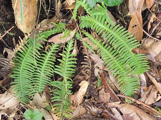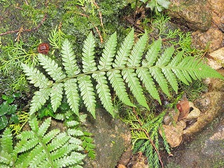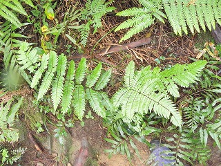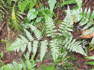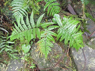【左】コウヤコケシノブ 【中】ノコギリシダ 【右】ノコギリシダ