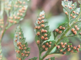 【左】タニイヌワラビ 【中】タニイヌワラビ 【右】トラノオシダ