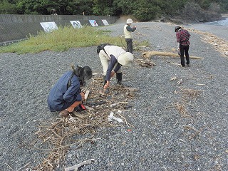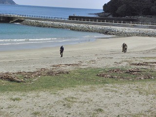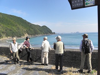 世界遺産、熊野古道の人気のルート「馬越峠」。その周辺紀北町海山区を中心に観察旅行を実施しました。 1日目は、紀北町の自然に詳しい伊藤先生にガイドをお願いし、充実したポイントでの観察を行いました。まず、島勝神社樹叢(県指定天然記念物)では、バクチノキの花、金網に張り巡らされたウメノキゴケ、ナギ、ムロマムシグサ等のほか、南方系植物、リュウビンタイ、ナチシダ、ビロードムラサキなどを確認しました。ビロードムラサキはここが北限となっている暖地性落葉灌木で、葉は、細かい毛で覆われ、まさにビロードの感触でした。その後、島勝港に向かい、美しいライトブルーのソラズズメダイやメジナ、ガンガゼなどを見ることが出きました。船越海岸に移動し、島勝の海食洞門を確認し「ハマナツメ」の自生地船越池周辺を散策しました。ハマナツメは、三重県が北限と考えられており、別名「鳥止まらず」とも言われ幹は鋭い棘で覆われていました。その後、船越海岸で磯、大白池と海岸でビーチコーミング、鳥や魚、カニなどを観察しました。捕らえたメジナは、透明の容器に入れ置く場所の色で体色が変わるさまを確認しました。