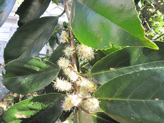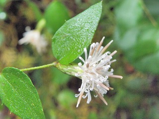【左】バクチの花。バラ科、蜜腺が見られる 【中】リュウビンタイが自生 【右】コウベマイマイ?
