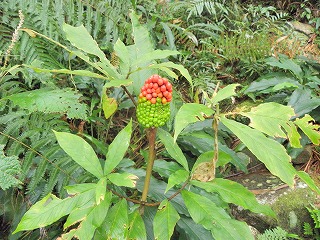 【左】ルリミノキ 【中】ムロウマムシグサ? 【右】イズセンリョウ