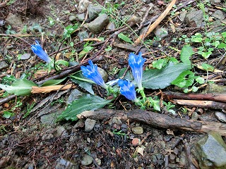 【左】アサマリンドウまたはイセリンドウ 【中】トゲナナフシ 【右】法然寺の鉄魚が飼育されている池
