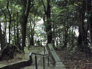 【左】九木神社入口階段 【右】クサマルハチが生えていたと思われる場所
