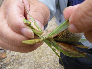 【左】オオスカシバ 【中】オオカマキリ 【右】オオカマキリ