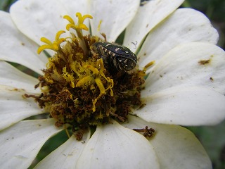 【左】キゴシハナアブ 【中】クモヘリカメムシ 【右】コアオハナムグリ