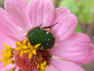 【左】コアオハナムグリ 【中】ナナホシテントウムシ 【右】アオマツムシ