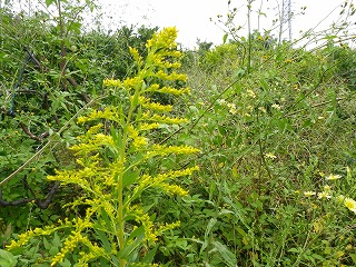 【左】セイタカアワダチソウ 【中】アメリカセンダングサ 【右】ビワ(蕾)