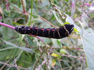 【左】セスジスズメ幼虫 【中】セスジスズメ幼虫 【右】セスジスズメ幼虫