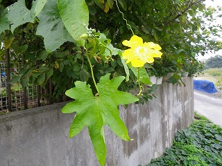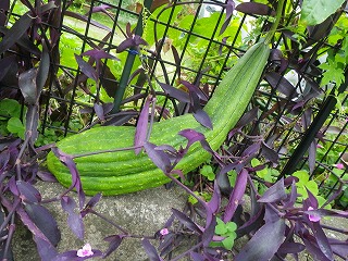 【左】ムラサキゴテン(園芸種) 【中】ヘチマ 【右】ヘチマ