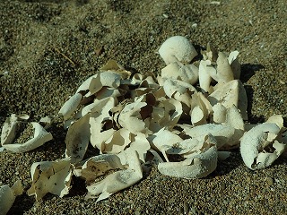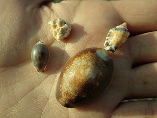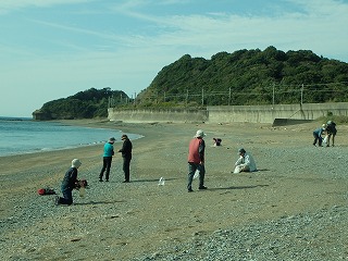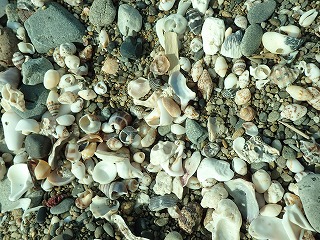 まず、向かったのは「みなべ千里浜」。ここではビーチコーミングを実施。砂粒に混じった小さなタカラガイや巻貝の貝殻がいっぱいあった。