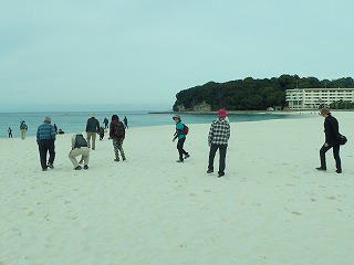 真っ白なサラサラの砂で美しい砂浜「白良浜」散歩。その後、島の中央に穴のあいた「円月島」を見ながら「南方熊楠記念館」に向かう。駐車場から記念館まではヤシ科のクロツグやアコウ、オオタニワタリ等南方系の様々な植物を観察することができた。和歌山が北限となるハカマカズラの種を拾うこともできた。珍しいものとしてはサツマゴキブリの死骸をたくさん見かける。
