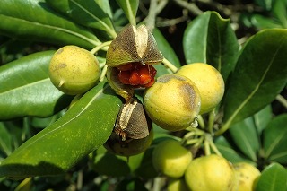 ハカマカヅラ、ハマオモト、トベラ、ツワブキ、ハマヒサカキ、ナワシログミ、ネコノシタ、ハマアザミ、アゼトウナ、イソギク、ハマゴウ、