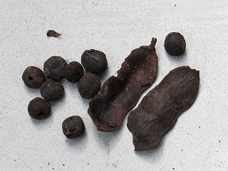 【左】ハマゴウ 【中】ハカマカヅラ 【右】ハカマカヅラの種子と莢